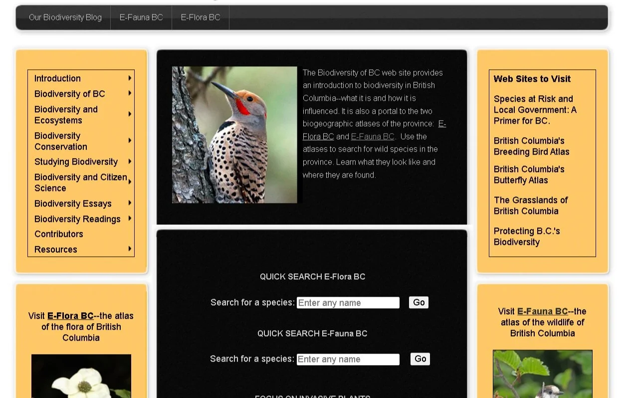 E-Fauna and E-Flora BC are electronic biogeographic atlases hosted by the UBC Department of Geography. These resources are incredibly comprehensive and include checklists compiled by local experts as well as pages for individual species. This is a great place to get extra information on observed organisms, including known range maps, habitat descriptions, and links to external resources.